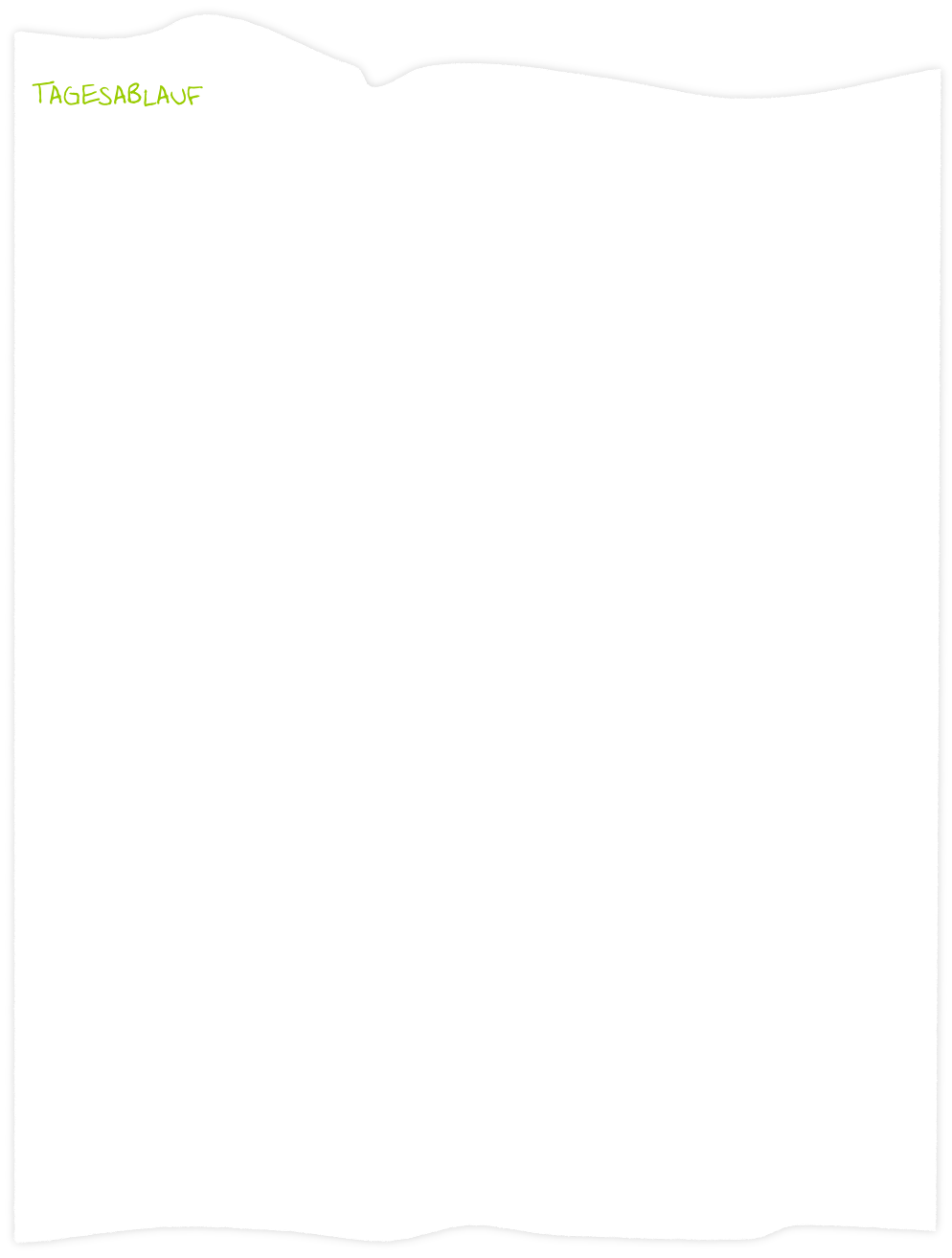 Da ich nicht mehr als vier Tageskinder betreue, gibt es die Möglichkeit, dass der Tagesablauf nach den individuellen Bedürfnissen der Kinder gestaltet wird. Trotzdem sind ein geregelter Tagesablauf und wöchentliche Rituale wünschenswert, denn sie helfen den Kindern sich leichter zu orientieren und sich wohlzufühlen.